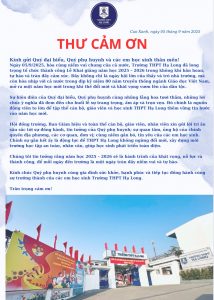 THƯ CẢM ƠN Kính gửi: Quý đại biểu, Quý phụ huynh và các em học
